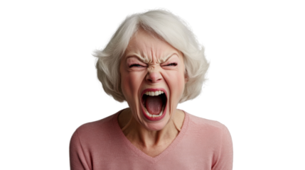 Frustrated gamer expressing challenging emotion with joystick on transparent background