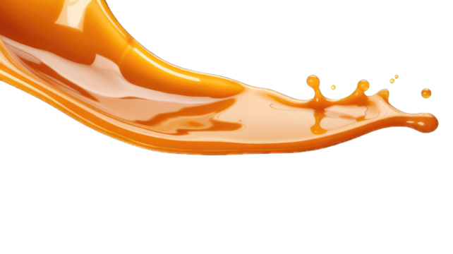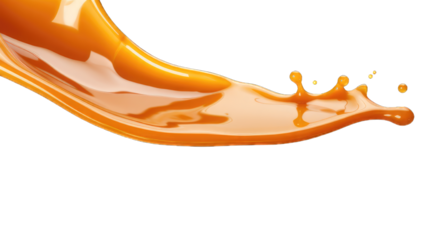 Melted caramel, delicious caramel sauce or maple syrup swirl isolated on white background.