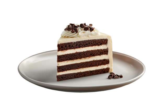 Piece of chocolate cheesecake with strawberries and whipped cream.