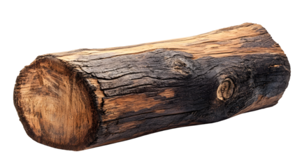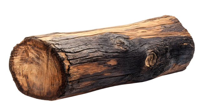 Weathered Old Log Isolated on White Background - Rustic Wood Nature Texture Concept