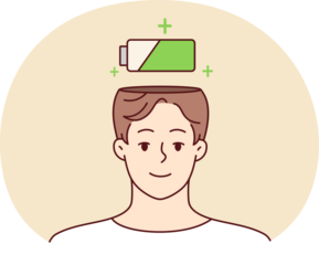 Working burnout and low energy concept, frustrated worker mental health problems, businessman with low battery red color, business life energy