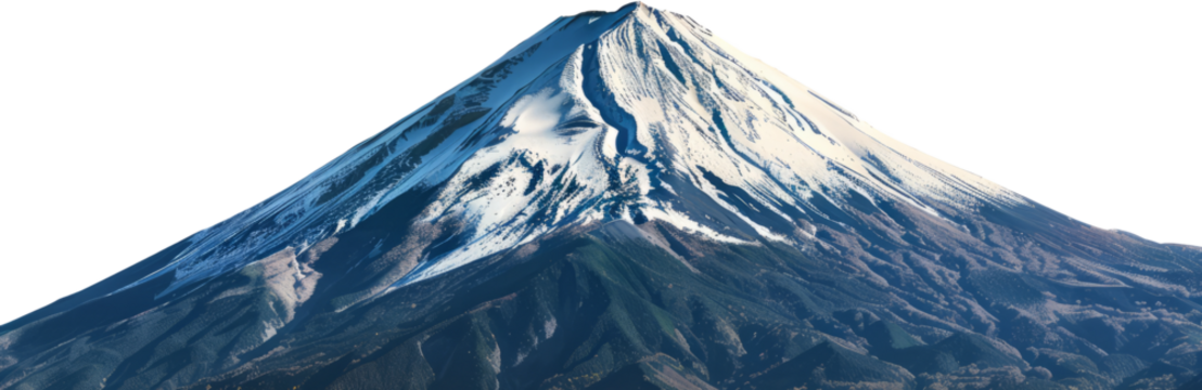 Fuji Mountain in Japan, snow capped peak in Spring isolated on white transparent