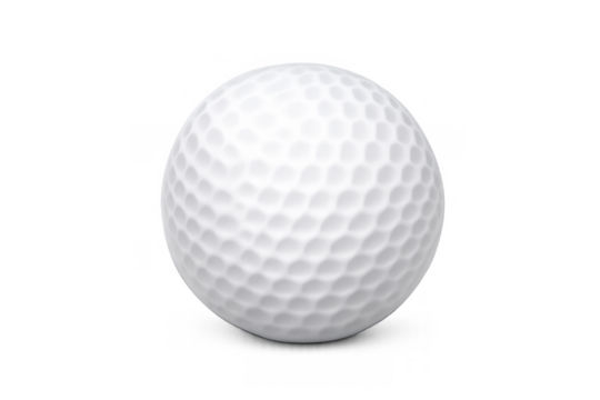White dimpled golf ball with shadow cutout against transparent background, ready for a swing or play