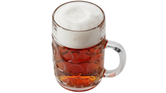 Isolated traditional Bavarian beer mug filled to the top, popular Oktoberfest celebration