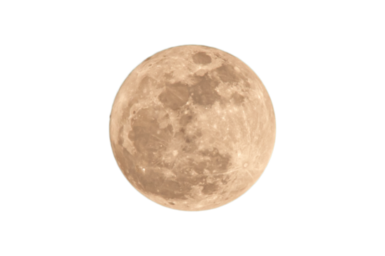 Photograph of the full moon in which you can see the craters and asteroid impacts. The photo was taken with a telescope and a camera.Transparent background