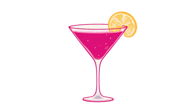 Minimalist pink floral doodle on transparent background