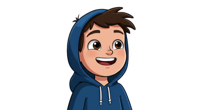 Captivating cartoon boy with vibrant red hair and striking green eyes, a whimsical illustration