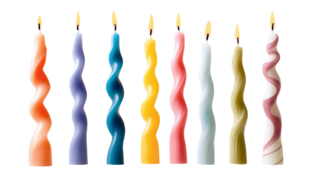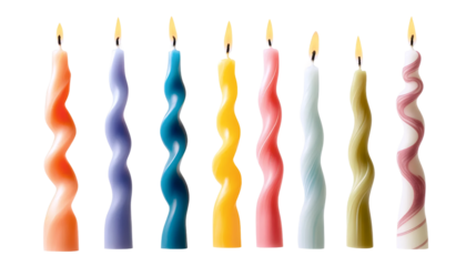 Birthday cake with colorful candles and slice being served isolated PNG with Transparent Background
