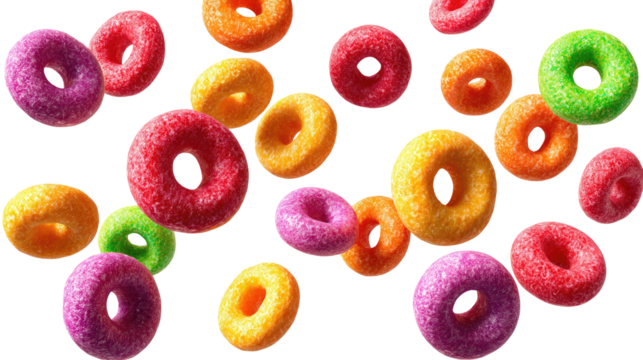 Cereal bowl with colorful cereal and marshmallows isolated on a transparent background