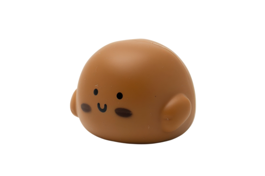 Cute, rounded figure with cheerful expression relaxing on a clean, white surface during a bright, sunny day at home isolated on transparent background