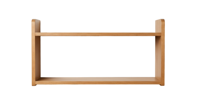 Light brown wooden wall shelf with two shelves.