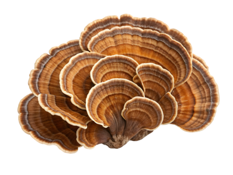 many-colored polypore mushroom, Coriolus versicolor fungus isolated on white