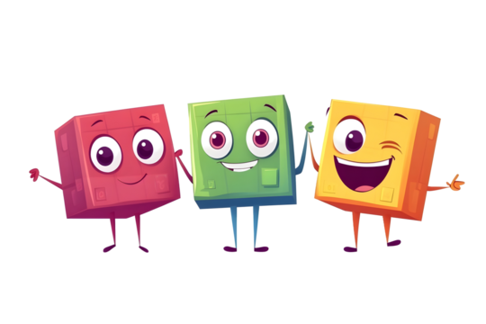 Groovy math cube geometric figure character Preschool kids education basic shape cheerful mascot School math geometric figure funny groovy vector perso
