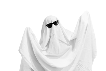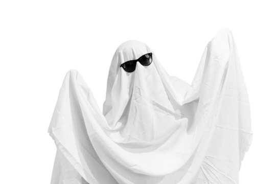 Anonymous businessman with cardboard box head, cross arms, transparent