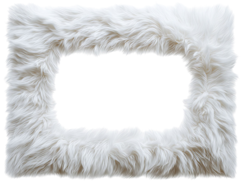 PNG of Elegant white fur frame with a soft, fluffy texture, perfect for adding a touch of luxury to any photograph.