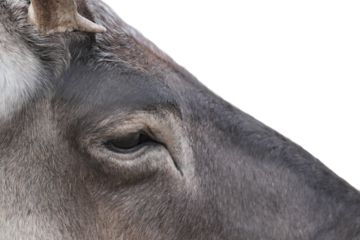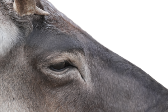 Close-up view of realistic fuzzy brown and white rabbit ears with detailed fur texture, cut out transparent