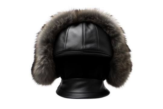 A Luxurious Fur Trapper Hat, Crafted for Winter's Embrace on a Clear PNG or White Background.