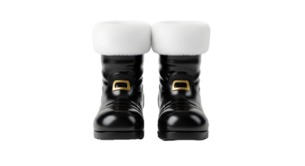 Festive black Santa boots with fur trim shine, suitable for Christmas cards, seasonal promotions, and holiday-themed designs.