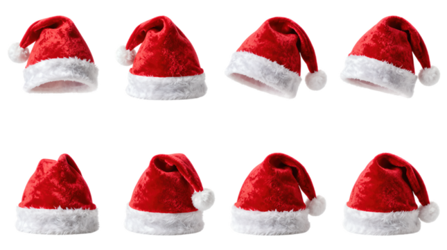 Caucasian woman blowing kiss wearing santa hat on transparent background