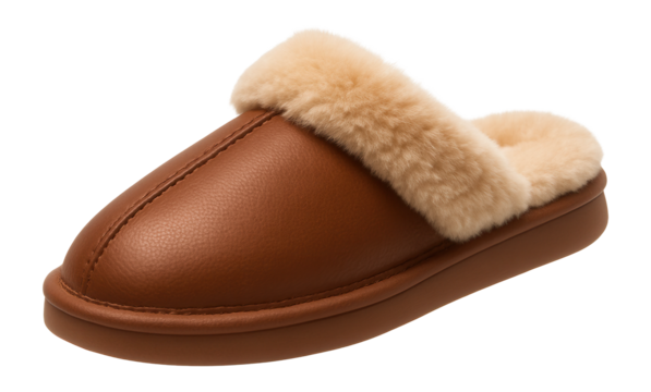 Closed-toe slippers with a faux leather upper and faux fur collar trim