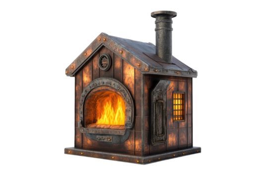 Industrial Furnace with Glowing Fire Inside for Metalwork Production isolated with transparent background