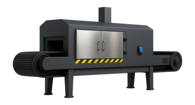 Industrial metallurgy furnace with flames and smoke erupting isolated on transparent background