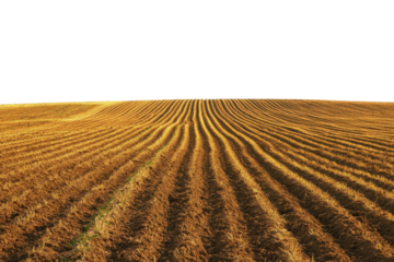 Brown plowed soil with deep furrows stretching into the distance, symbolizing agricultural preparation and earth's natural beauty.