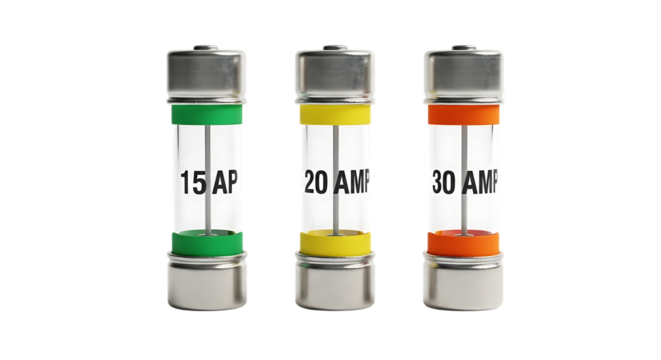 Fuses (Assorted Types) isolated on a transparent background.
