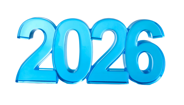 Happy New Year 2026 text, with abstract geometric shapes and bright colors, cutout, PNG isolated on white or transparent background