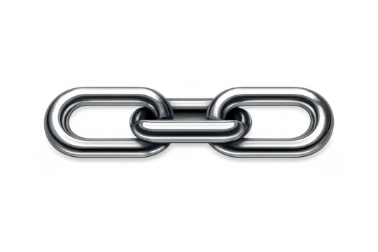 Metal chain link concept for strength, security, connection, partnership and protection on transparent background