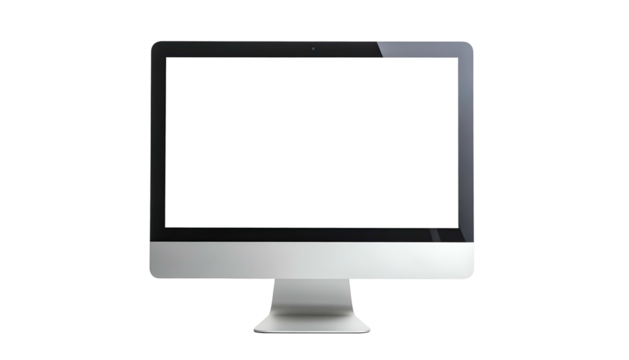 Modern, silver computer screen with blank, white display, isolated on a black background