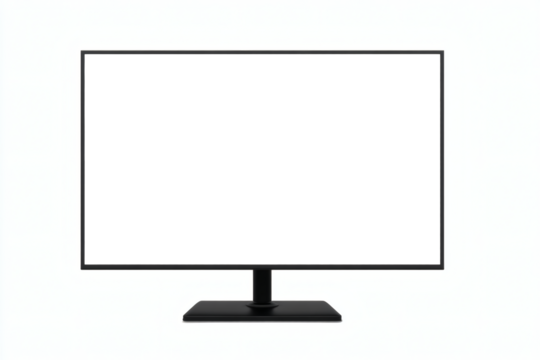 Sleek modern black computer monitor on a stand, perfect for presentations or workspaces