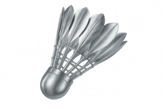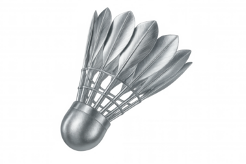 Rotating metallic silver badminton shuttlecock on transparent background, perfect for sports concepts