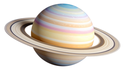 Pastel-colored planet with elegant rings and soft hues creating a dreamy appearance on transparent background.