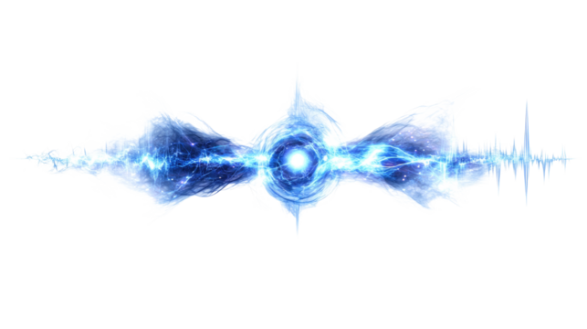 Abstract Swirling Bright Blue Energy Stream with Particles and Glowing Orb on Transparent Background