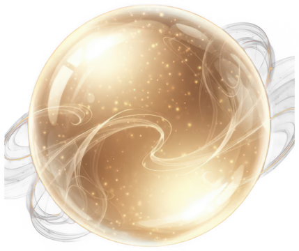 Luminous golden orb with swirling ethereal lines and sparkling particles, magical energy contained within transparent sphere