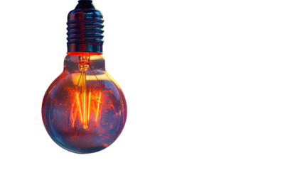 Colorful light bulb shining with transparent background