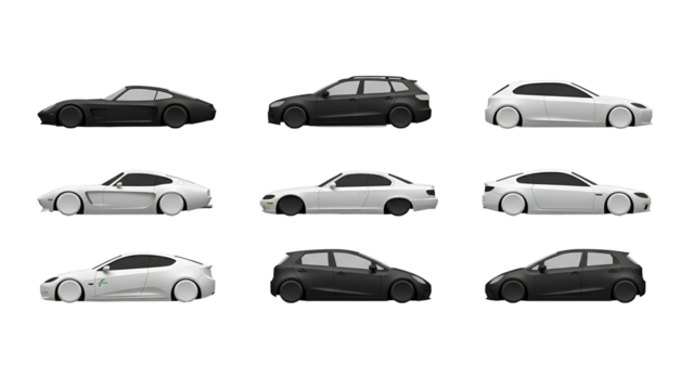 Collection of Modern Electric Vehicles in Sleek Black and White Colors on Transparent Background