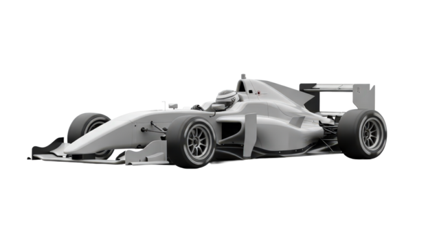 Isolated monochromatic formula race car shows speed and design on white, reflecting the competitive spirit of winter sport.
