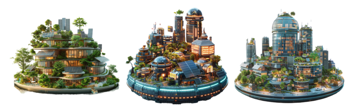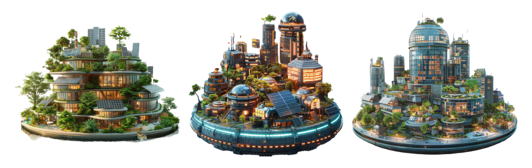 Floating Cities Isolated on Transparent Background