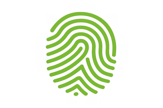 Green fingerprint icon representing biometric authentication, digital identity, data security, and privacy access on transparent background