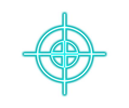 Glowing cyan neon crosshair target symbol for gaming or security concepts on transparent background