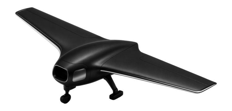 Single-wing drone with recessed engine intakes and low-profile silhouette