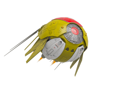 Smiling aliens waving greeting in futuristic arrival scene with transparent PNG background for sci-fi and fantasy design projects