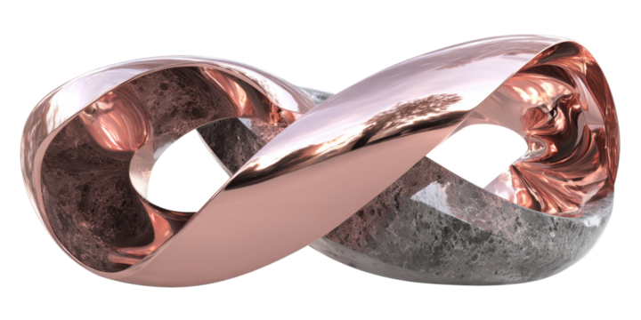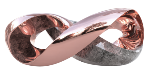 Abstract Infinity Sculpture with Copper and Stone Texture on Transparent