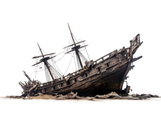 Steampunk boat sailing on transparent background with steam coming out of its chimneys