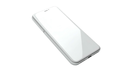 Angled, white smartphone with blank screen on black background