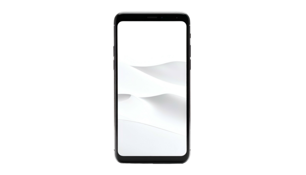 A sleek smartphone with a black screen on transparent background for modern tech designs