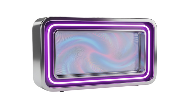 Futuristic Neon Display Frame with Iridescent Swirls on Screen, Isolated