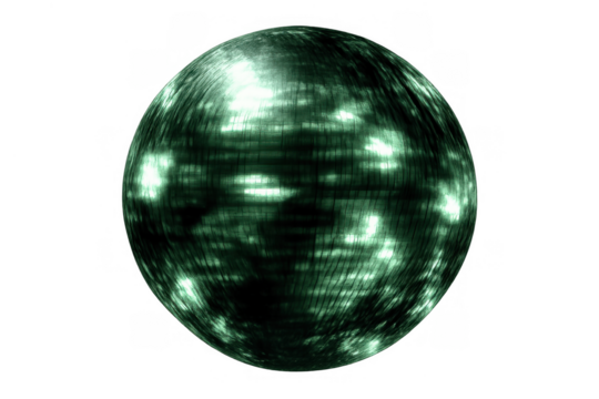 Green glowing sphere presenting abstract energy, a futuristic orb with metallic texture on transparent background